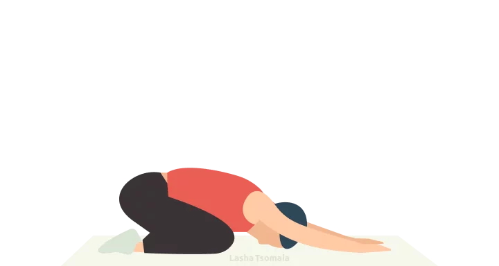 - Gently place your forehead on the floor while keeping your arms extended out in front of you.